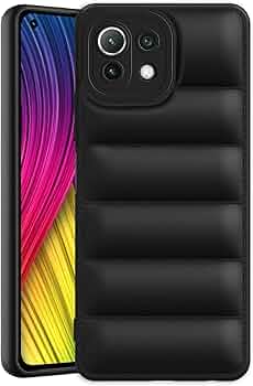 Amazon Brand - Solimo Puffer Case Camera Protection Soft Back Cover for Mi 11 Lite Ne 5G | Mi 11 Lite - Black - Rubber