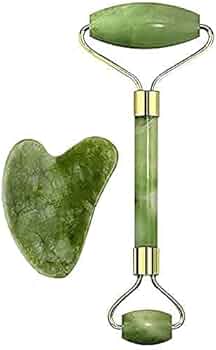 AMBROSIAL STORE Facial Massager Jade Roller & Gua Sha Tool 100% Natural Stone for Face Neck Healing Skin Wrinkles & Face Eye Neck Foot Manual Massage ...