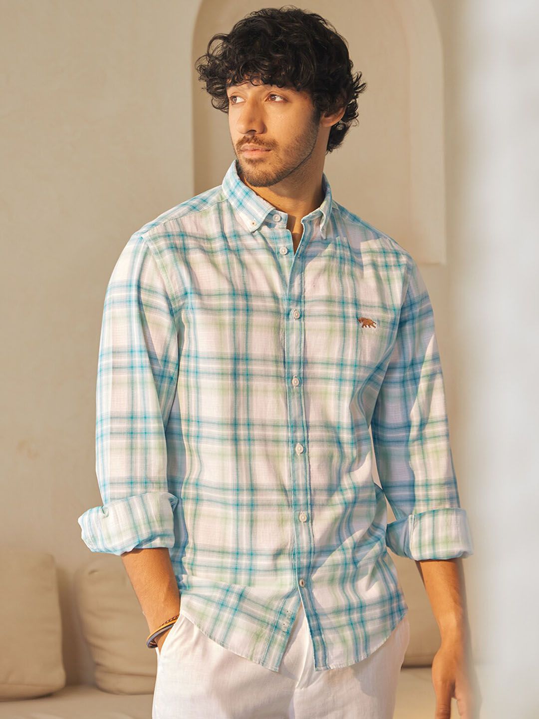Andamen Comfort Tartan Checked Linen Casual Shirt