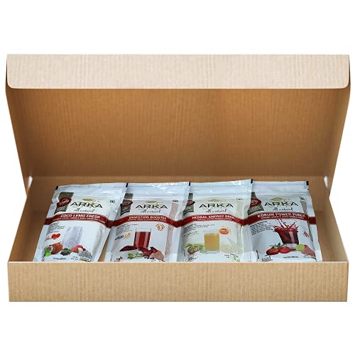 Arka All Natural Premium Healthy Gift Hamper Box Pack of 4 (180gm Each)Herbal Energy Drink | Digestion Booster | Coco Lemo Fresh | Kokum Power Punch