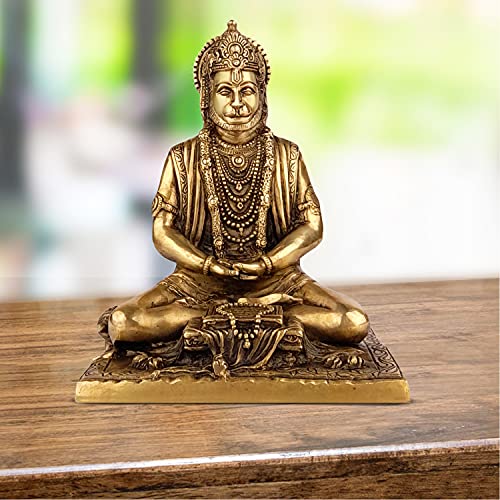 Artvarko Brass Lord Hanuman Ji Murti Dhyan Mudra Meditation Bajrangbali Bhagwan Statue Showpiece for Pooja Gift Living Room Decoration Home Décor 8 Inches
