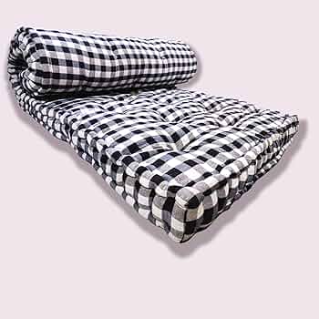 ATOOTFUSION Soft Thick 5-Inch Box Textile Cotton Box Quilt Toshak | Mattress Single Bed Medium Firm Foldable Reversible Cotton Box Mattress | Gadda Medium Firm, White and Black Checkered (Small Single (72X30X5 Inches))