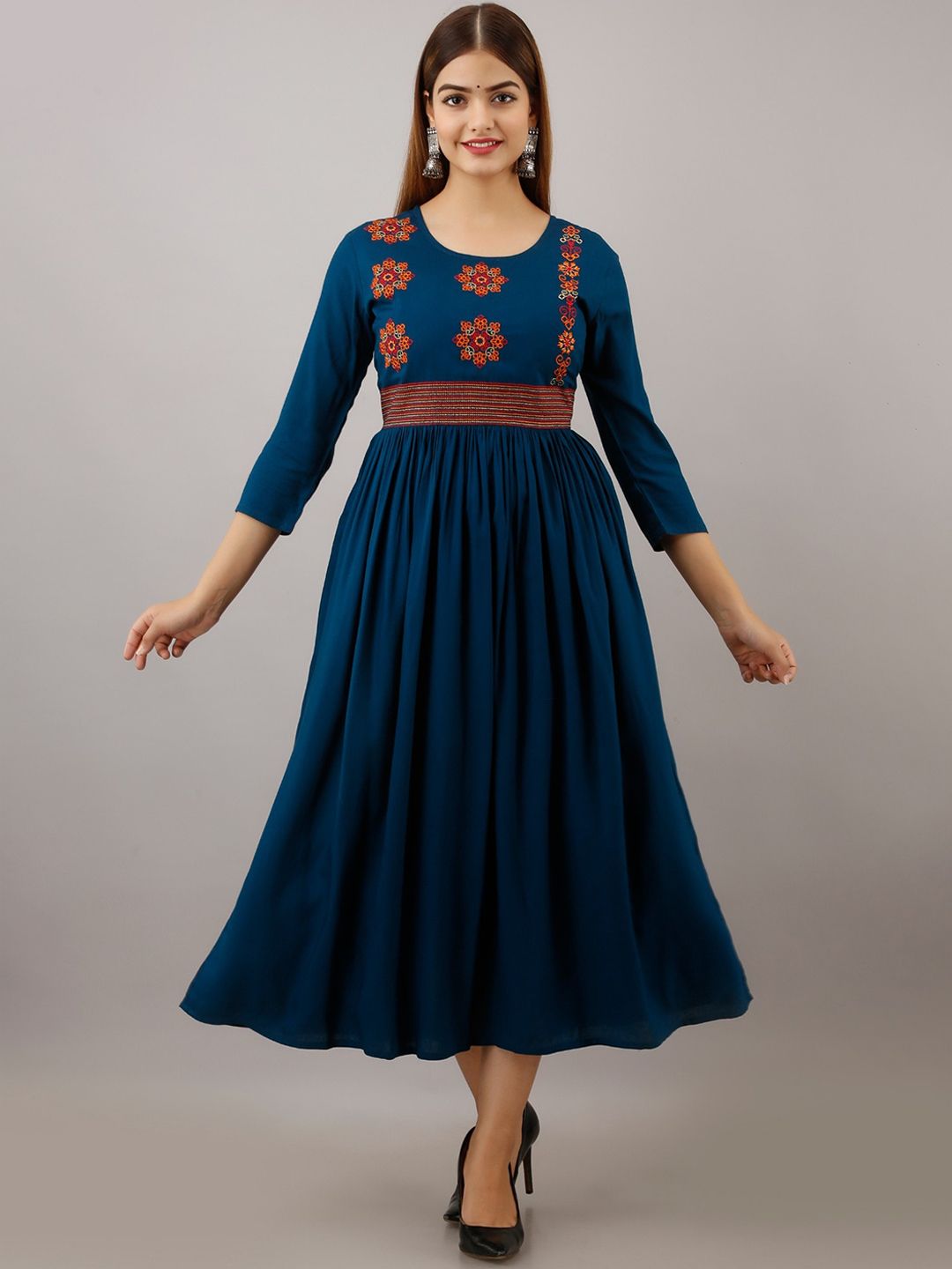 You can check the price history of BAIRAJ Floral Embroidered Fit and Flare Midi Ethnic Dresses above. This product price is 699 but the lowest price is 699. The average and highest price are 699 and 699 respectively.