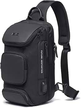 BANGE Sling Bag - Black, 13.8" * 8.3" * 4.7", Waterproof, Cross-Body, USB Charging Port, Breathable Back Panel