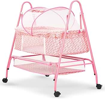 BAYBEE Clora Baby Swing Cradle for Babies | Infants Bedding Set with Mosquito Net & Storage Basket | Jhula Palna for New Born Baby | Sleeping Swing Cr...