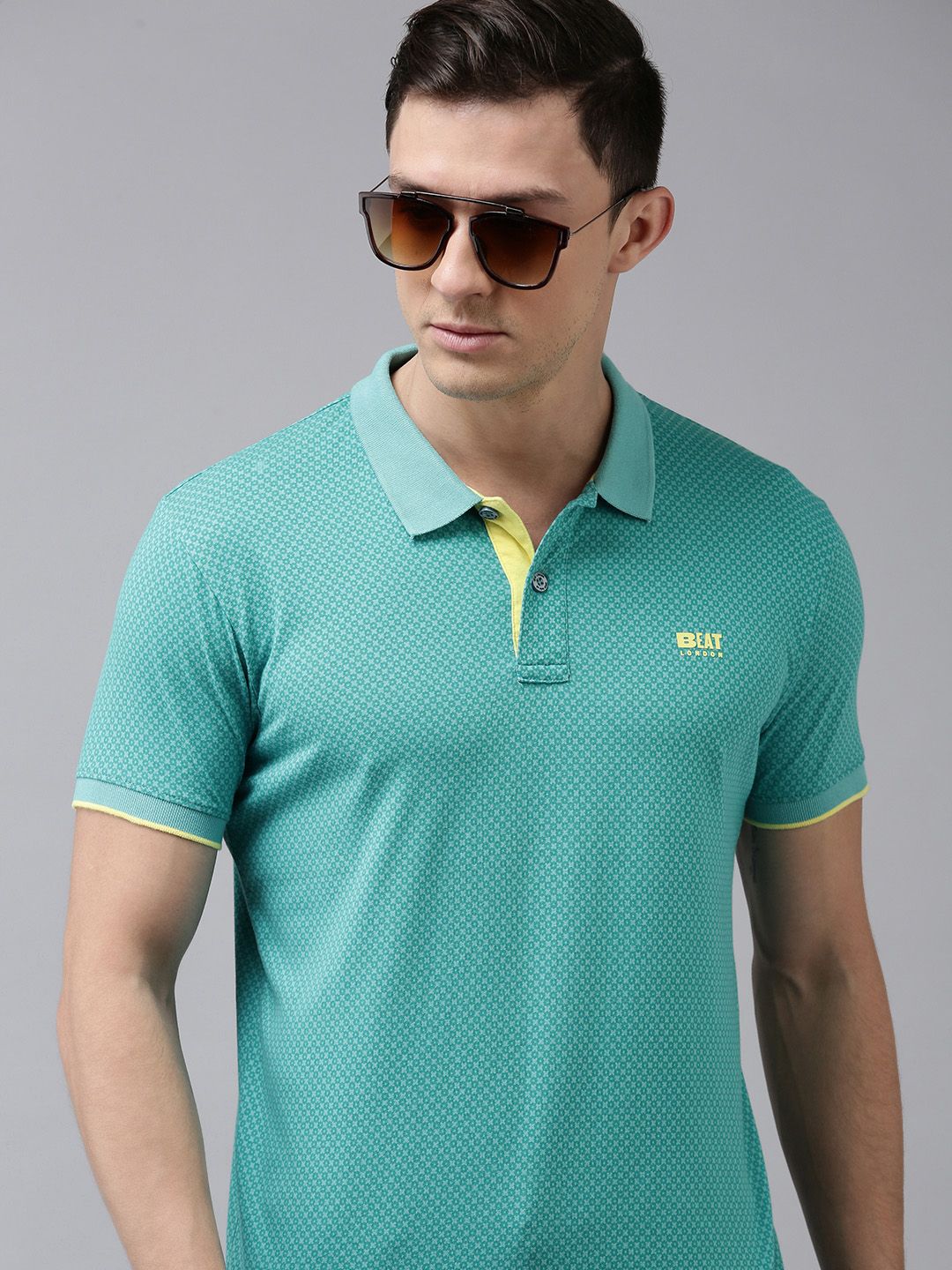 BEAT LONDON by PEPE JEANS Men Blue Polo Collar Pure Cotton T-shirt