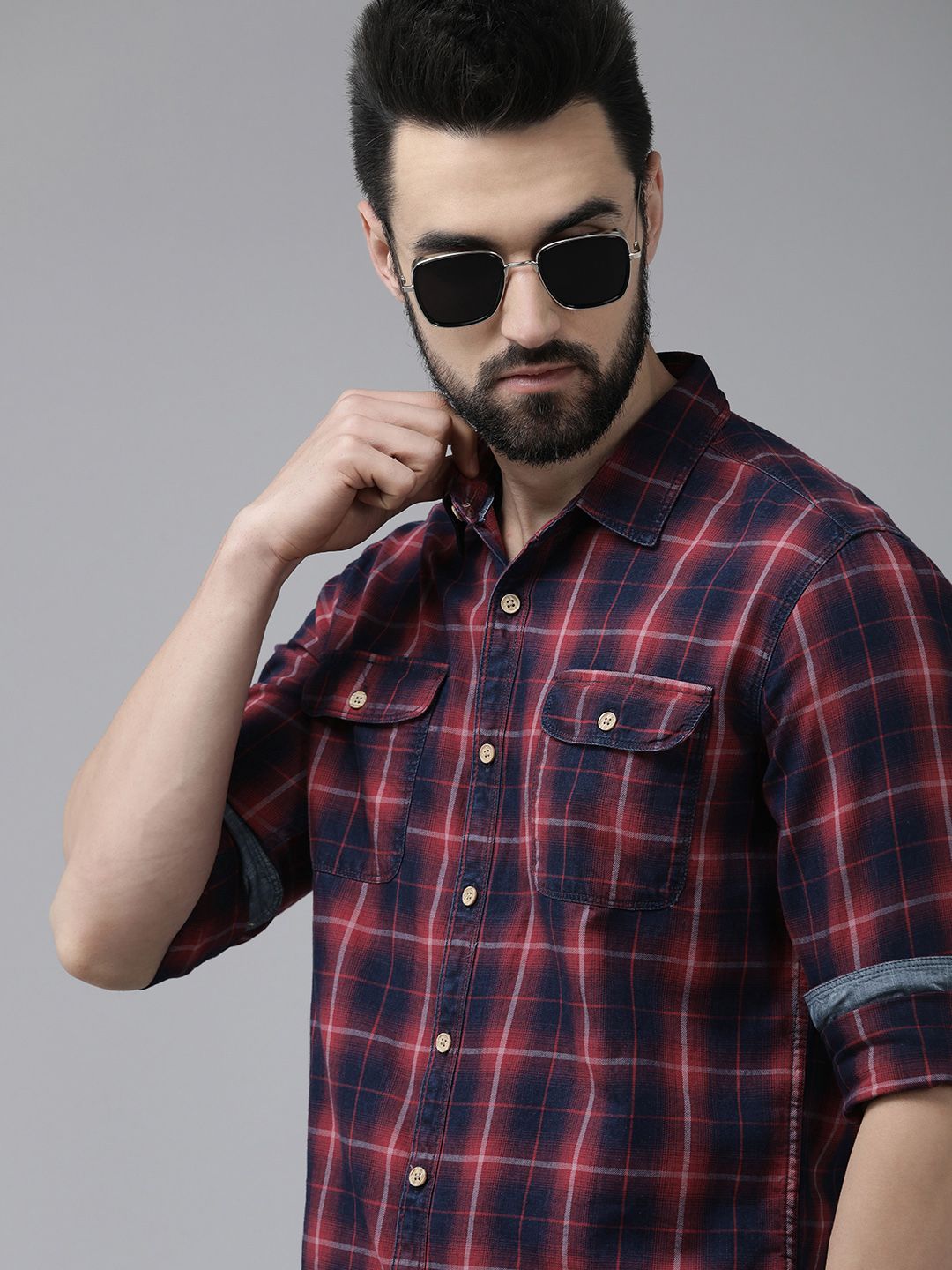 BEAT LONDON by PEPE JEANS Men Red Slim Fit Tartan Checks Opaque Pure Cotton Casual Shirt