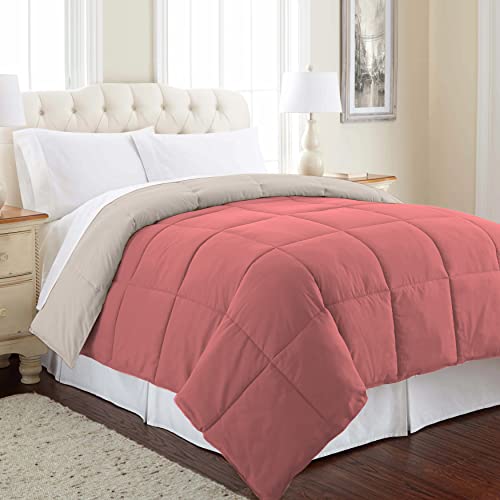 bien LIVING Microfiber Reversible Comforter Single Size (60 x 90 Inches), Sandy Beige + Candy Pink, 200 GSM