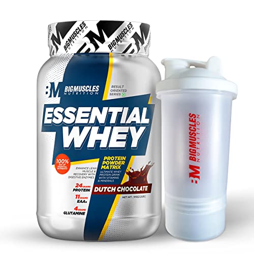 Bigmuscles Nutrition Essential Whey Protein 1Kg [Dutch Chocolate] + Shaker Bottle