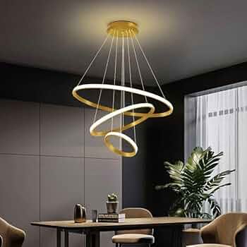 blissbells Modern Double 3 Ring LED Chandelier Lamp (Warm White, Gold)