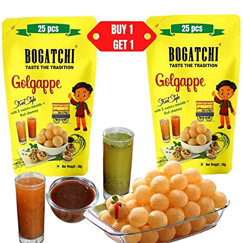 BOGATCHI Pani puri kit - pani puri pellets + 2 pani powders and chutney | pani puri packet ready to eat | pani puri papad - Golgappe Packet Readymade |Golgappa Pani Poori Papad - Mini Kit - 2 x 50g