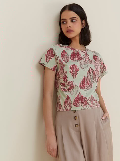 Bombay Paisley by Westside Mint Leaf Printed Cropped T-Shirt