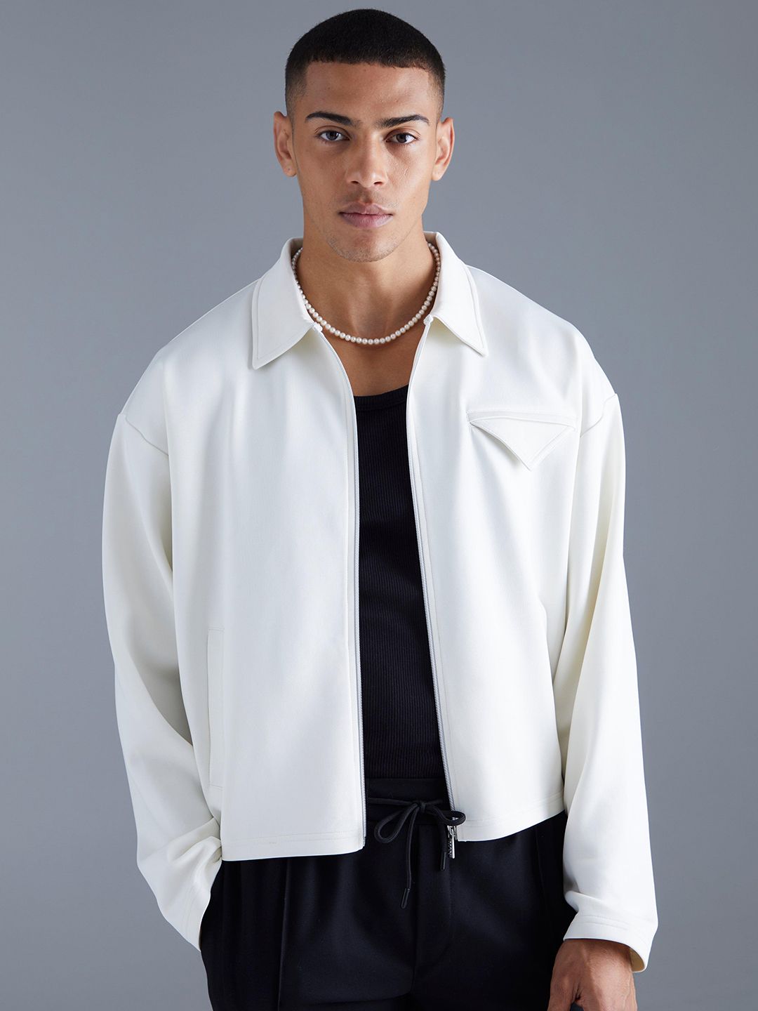 boohooMAN Boxy Fit Scuba Harrington Jacket