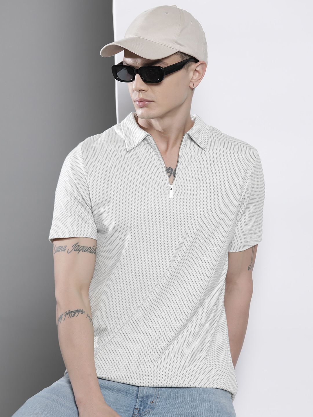 boohooMAN Polo Collar Self Design Slim Fit T-shirt