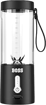 BOSS InstaBlend Portable Blender for Smoothies, Milk Shakes and Juices | USB Rechargeable Bottle Blender for Kitchen | 4000 mAh | 450 ml, Black