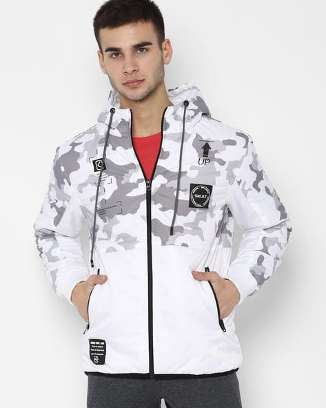 Camouflage Print Slim Fit Hooded Jacket