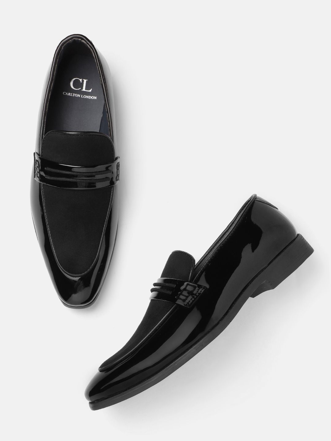 Price History ofCarlton London Men Black Solid Suede & Glossy Finish Evening Loafers