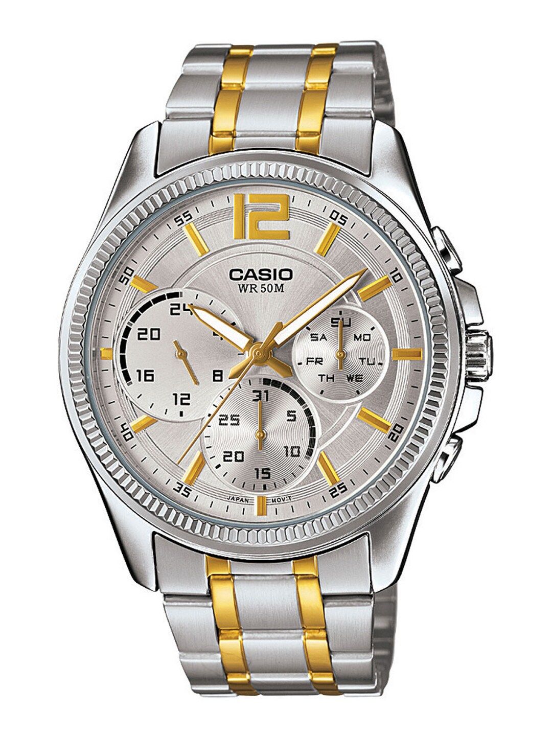 CASIO Men Silver-Toned Bracelet Style Straps Analogue Watch A1664