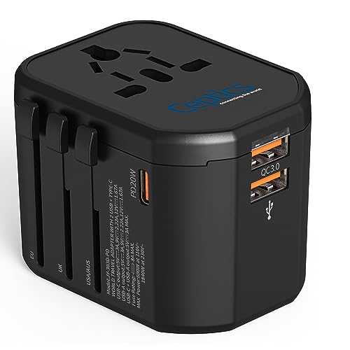 Ceptics Universal Travel Adapter - 4 in 1 Worldwide Travel Adapter, Universal Plug Socket - USB QC 3.0 - USB-C 20W, International Travel Adapter