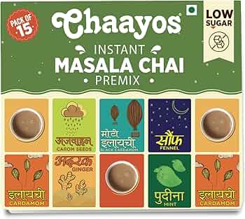 Chaayos Instant Tea Premix - Low Sugar - Masala Flavour (15 Sachets) | Instant Tea | Tea Premix | Masala Tea | Masala Chai | Assam Tea | Flavored Tea ...