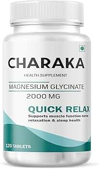 Charaka Chelated Magnesium Glycinate veg tablet -120 tablets | 2000mg Per Serving, support bone health,Muscle & Nerve Relaxation, Better Sleep Quality...