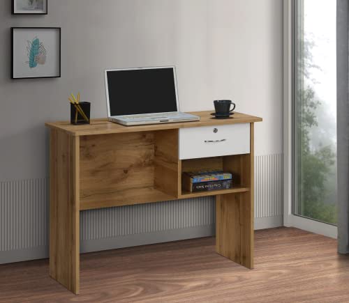DeckUp Plank Yonne Engineered Wood Study Table and Office Desk (Wotan Oak and White, Matte Finish)