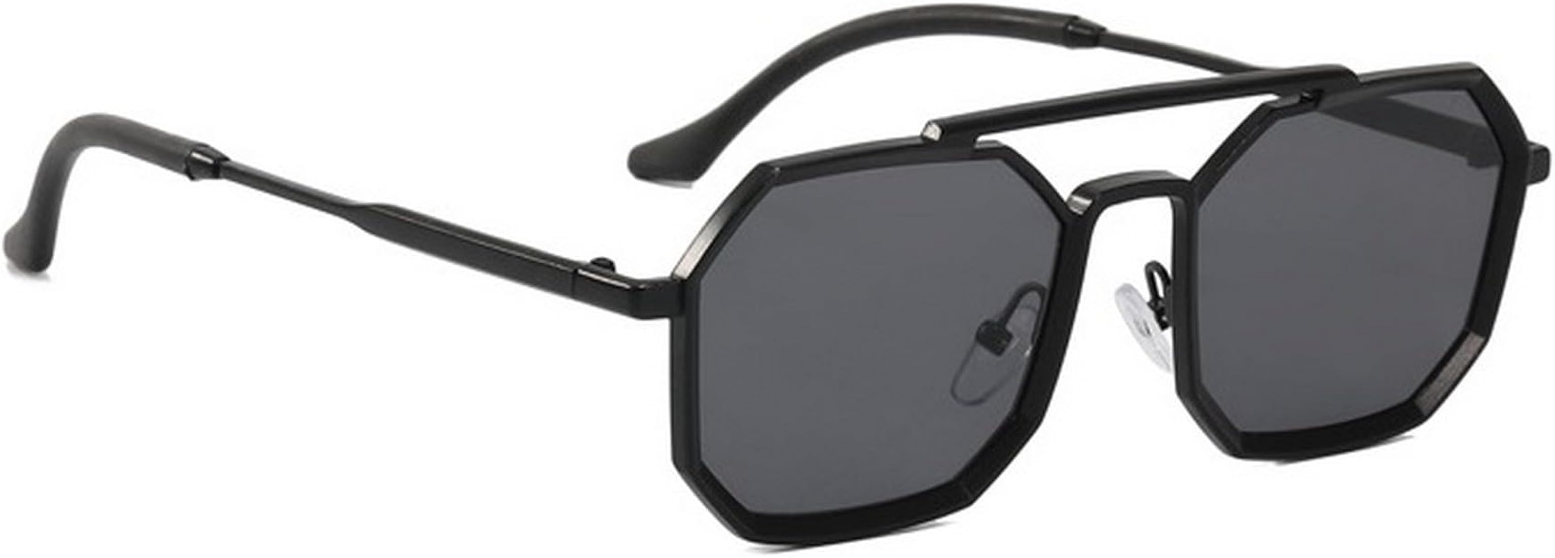Dervin UV Protected Full Rim Hexagonal Sunglasses for Men, Polygon Metal Frame Sunglasses