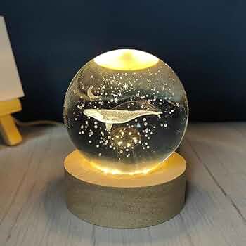 Desidiya Whale 3D Crystal Ball Night Light with Wooden Base - LED USB Table Lamp for Kids, Teens, and Home Decor