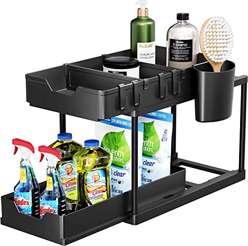 DIVA N DIYA Pack Under Sink Storage Kitchen Organiser with 2 Tier Double Slide Out Drawer, Multi-purpose Sliding Under Sink Shelf Bathroom Storage Rack (Under Sink Orgenizer_Pack Of 1)
