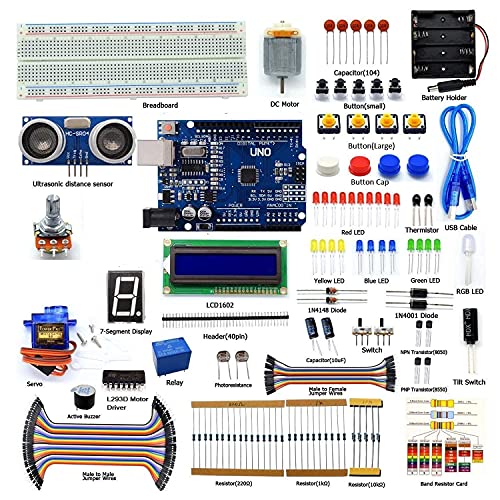 DIY Ultrasonic Distance Sensor Starter Kit For Compatible with Smd UNO IDE Projects, LCD1602, Breadboad, DC Motor, Starter/Beginner Kit for SMD Uno microcontroller with User Manual