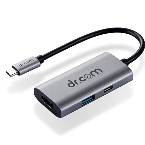 dr.com DCH-300 Mini USB C Hub Adapter -3 in 1 Portable Aluminum with USB C Charging Upto 100W Charging, USB C to HDMI, and USB 3.0 Port - Grey Adapter