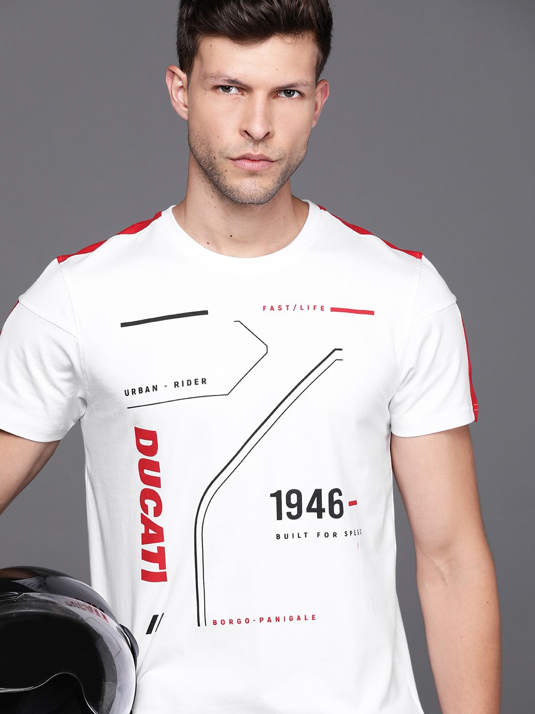 Ducati Men White & Red Brand Logo Printed T-shirt