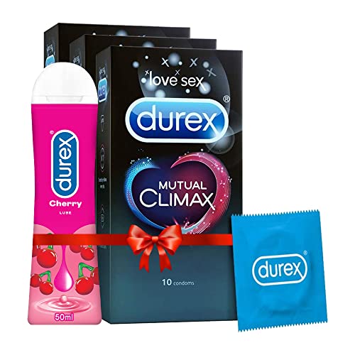 Durex Mutual Climax Condoms - 10s Each (Pack of 3) & Durex Play Lubricant Gel, Cheeky Cherry - 50 ml
