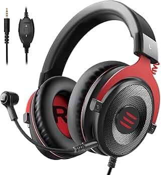 EKSA E900 Wired Stereo Gaming Headset-Over Ear Headphones with Noise Canceling Mic, Detachable Headset Compatible with PS4, PS5, PC, Mac, Laptop (Red)