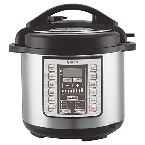 Elica Steel Electric Pressure Cooker with 7 in 1 Multi Functional Programmable Rice Cooker, Steamer, Yogurt Maker, Saute, Warmer and Slow Cooker - 6 L