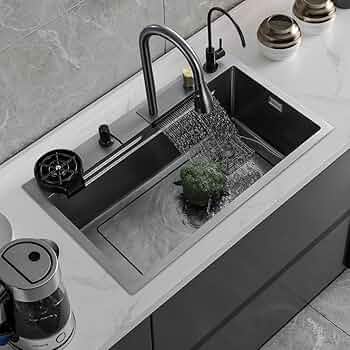 You can check the price history of EVANEX 24" x 18" Waterfall Kitchen Sink Integrated HONEYCOMB DESIGN 304 Grade With BLACK Finish Single Bowl Stainless Steel Multifunction Kitchen Sink above. This product price is 8825 but the lowest price is 7449.15. The average and highest price are 8972 and 9990 respectively.