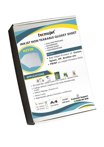 Formujet NTR Sheets - Inkjet Non Tear Glossy Waterproof Sheet for ID Cards & Other Applications A4 Size (175 Micron ,230 GSM)