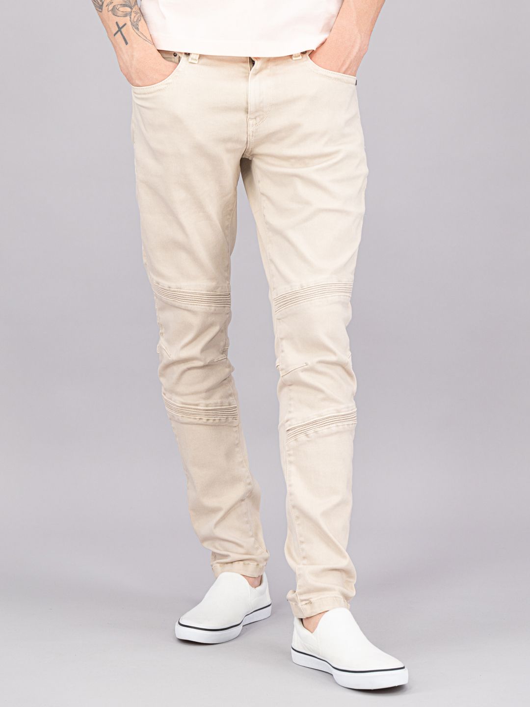 • Coloured shade, no fade beige jeansSlim fit, mid-riseClean lookNon stretchable5 pocketLength: regular