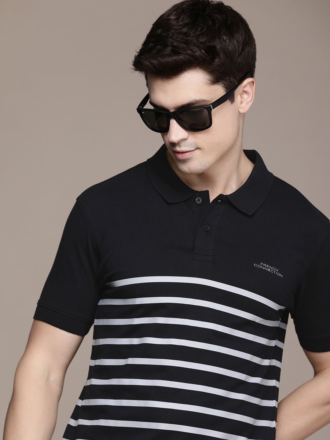 French Connection Pure Cotton Striped Polo Collar Casual T-shirt