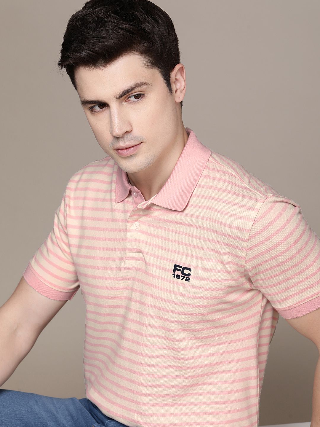 French Connection Striped Polo Collar Pure Cotton T-shirt