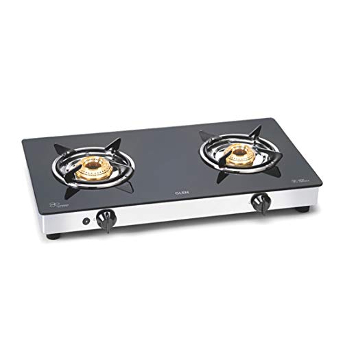 Glen 2 Burner LPG Glass Gas Stove with Brass Burner, Auto Ignition, Black (1020 GT BB AI)