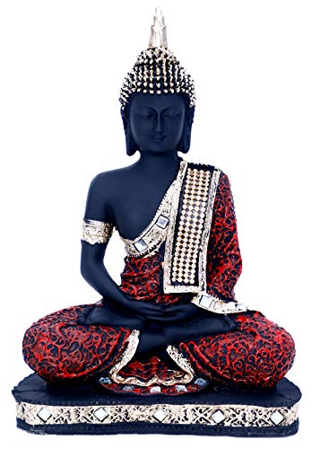Global Grabbers Polyresin Sitting Buddha Idol Statue Showpiece for Home Decor Decoration and Gifting Item, Red Black, 1 Piece, 24CM, BS2(JC)