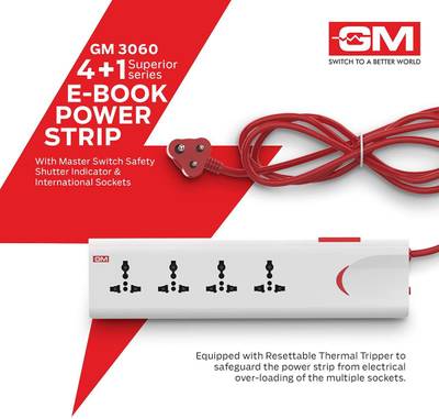 GM Ebook GM 3060 E-Book 4+1 Power Strip Master Switch 3Pin 10AMP 4 Socket Extension Boards