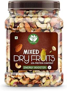 Go Vegan Healthy Nutmix 1Kg, Dried Almonds, Black Raisins, Cashewnuts, Cranberries, Black Dates & Many More Pack of 2 (500g Each Jar)