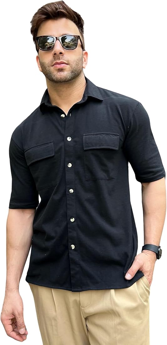 GRITSTONES Men Oversized Half Sleeve Double Pocket Shirt