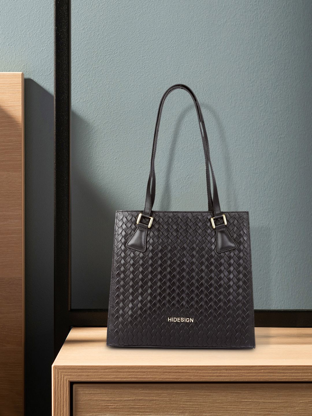 Hidesign Black Woven Design Leather Structured Shoulder Bag