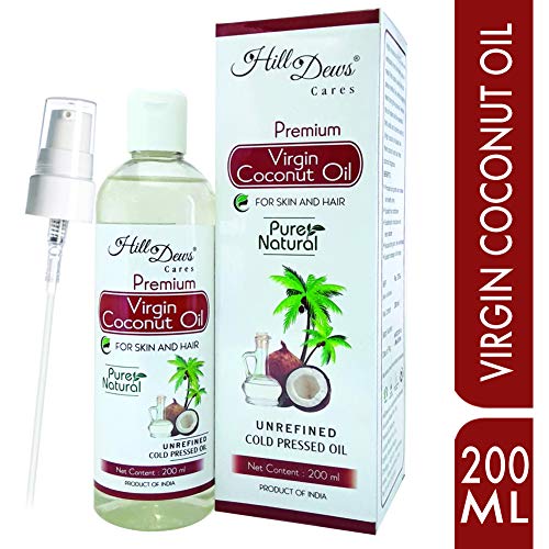HillDews Virgin Coconut Oil 200ml Pure Natural Unrefined Cold Pressed Skin and Hair - Free From Paraben, Hexane and Mineral Oil