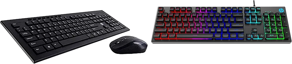 HP USB Wireless Spill Resistance Keyboard and Mouse Combo with 10m Working Range 2.4G Wireless Technology & K500F Backlit Membrane Wired Gaming Keyboard with Mixed Color Lighting