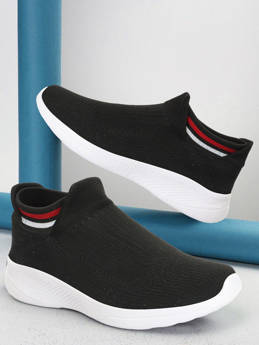 HRX by Hrithik Roshan Men Black & White BOSTON Textured Slip-On Sneakers