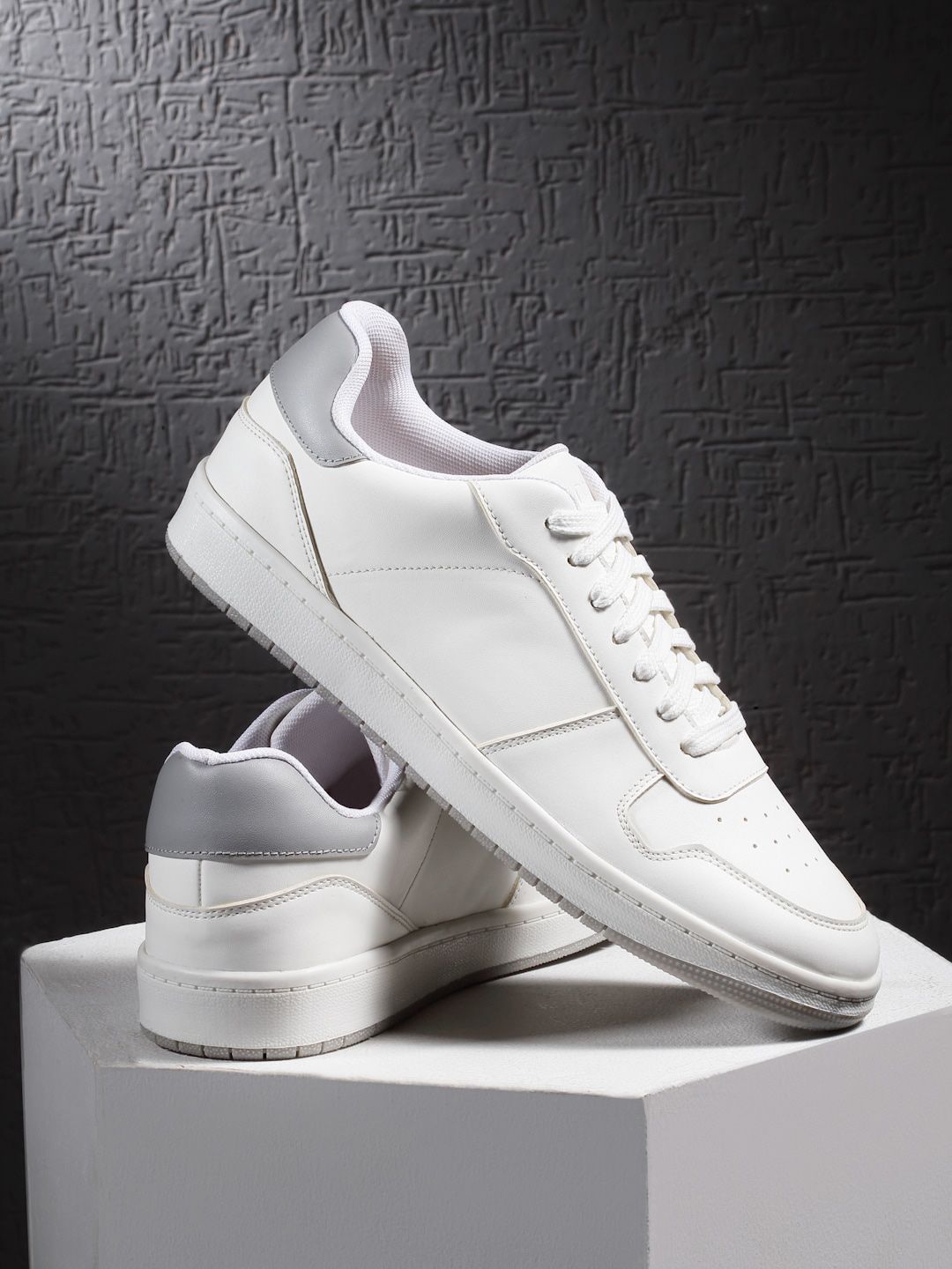 HRX by Hrithik Roshan Men White & Grey Perforations Comfort Insole Basics Sneakers